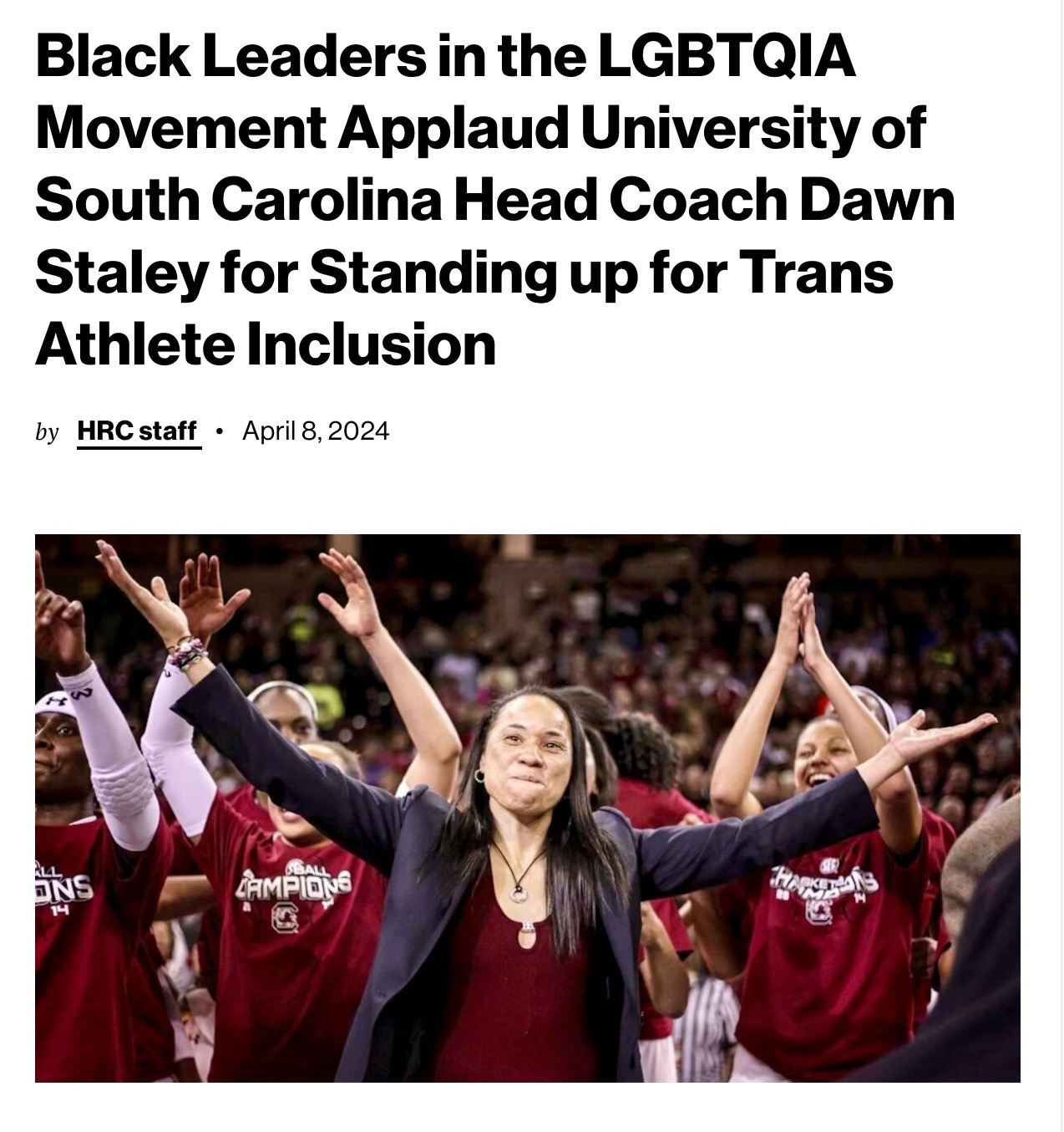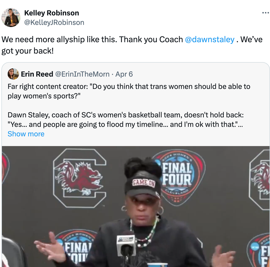 We began the week celebrating University of South Carolina women's basketball coach Dawn Staley for her principled stance of solidarity with transgender athletes in the face of criticism.