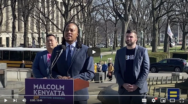 HARRISBURG — Today the Human Rights Campaign (HRC) PAC, the nation’s largest lesbian, gay, bisexual, transgender and queer (LGBTQ+) civil rights organization, along with Planned Parenthood PA PAC, came together on the steps of the Pennsylvania Statehouse to announce their joint endorsement of Pennsylvania State Representative Malcolm Kenyatta for Auditor General.
