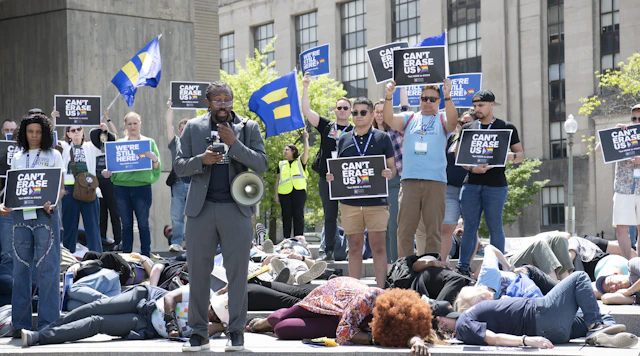 WASHINGTON, DC— This afternoon, the Human Rights Campaign (HRC) – the nation’s largest lesbian, gay, bisexual, transgender and queer (LGBTQ+) civil rights organization – hosted a die-in in front of the Department of Health and Human Services (HHS) to protest the Trump Administration’s dangerous cuts to HHS programs. The cuts, which target programs and research on a wide variety of other social and public health issues including STIs, mental health and suicide prevention, gender-affirming care, cancer prevention, elder care, substance use and harm reduction and homelessness will result in far-reaching, deadly consequences for the LGBTQ+ community.