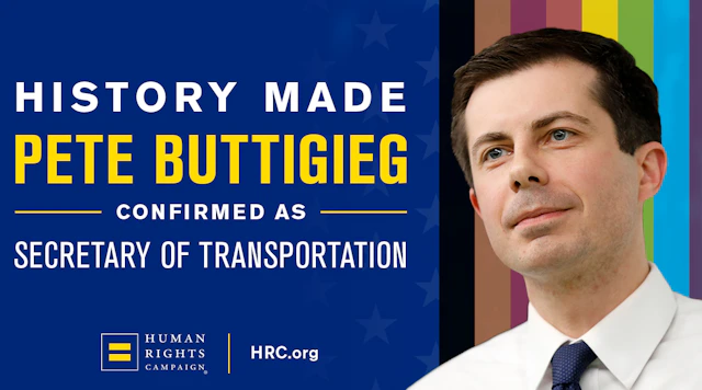 The U.S. Senate in a historic and overwhelmingly bipartisan vote confirmed Pete Buttigieg to be Secretary of Transportation. He is the first openly LGBTQ, Secretary or Senate-confirmed person to lead a department and hold a Cabinet-level position.